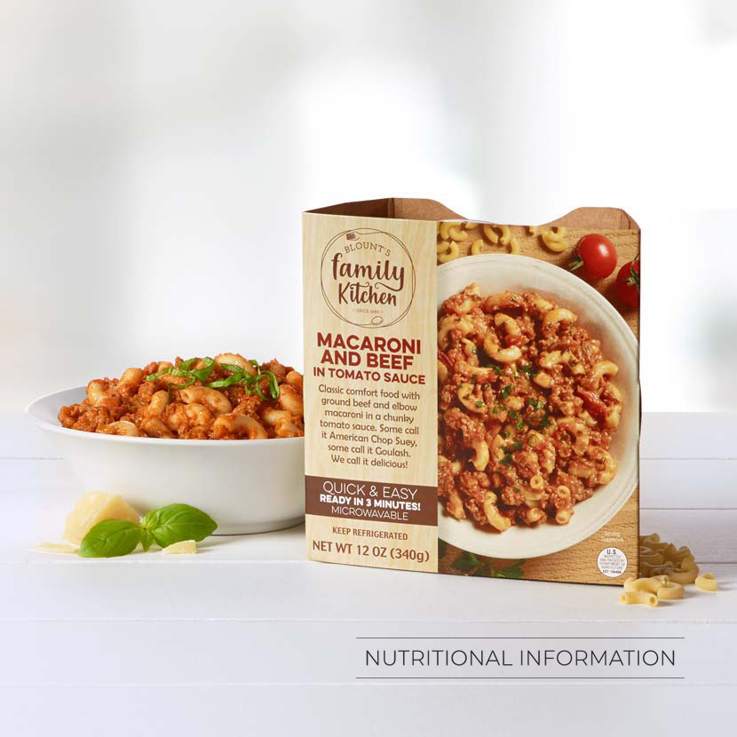 Wake-up your taste buds with Blount’s Family Kitchen Comfort Meals. These meals are the true definition of comfort food - made with pasta and only the highest quality ingredients,