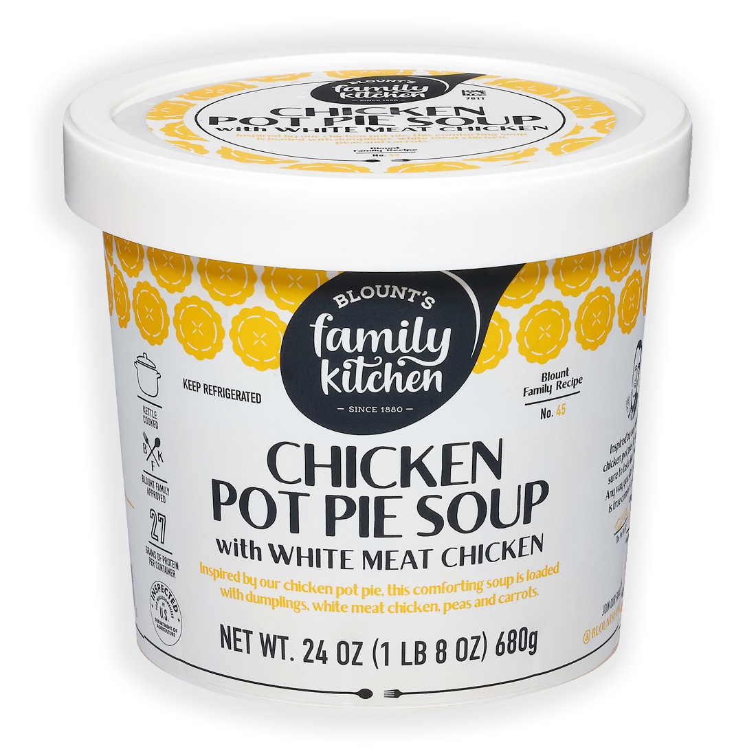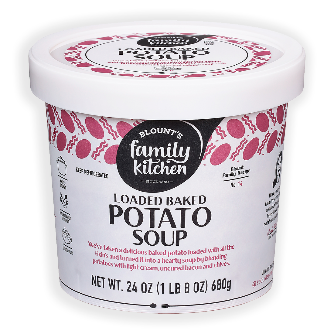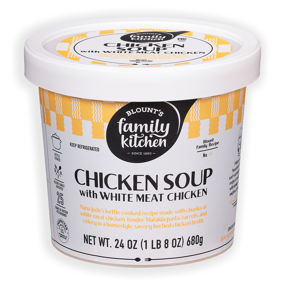 As a kid, the anticipation of receiving a card from Grandma Blount meant one thing - CASH! Just kidding, what we really looked forward to was her famous hidden initials. Grandma Blount always chose cards that were entirely too busy and had way too much going on. Why, you ask? Because it meant finding the initials she cleverly hid in the design would prove to be a challenge. Once we opened that envelope, the search for “RPB” (Ruth Palmer Blount) was on! Grandma Blount was the glue that held our family together. She loved to cook as much as she loved to eat, and she passed this love down to all of us. We often say this brand was “born from a love of food,” and she’s the matriarch behind it all. As homage to our grandma, we have hidden the initials “B, F & K” inside the pattern of every cup of soup!