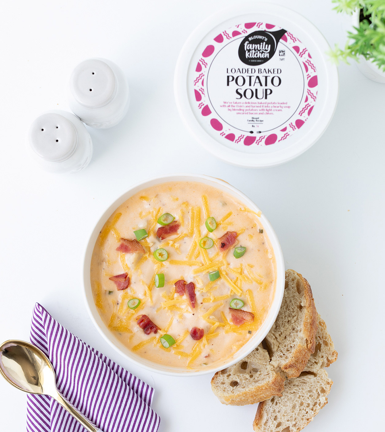 We’ve taken a delicious baked potato loaded with all the fixin’s and turned it into a hearty soup by blending potatoes with light cream, uncured bacon and chives.
