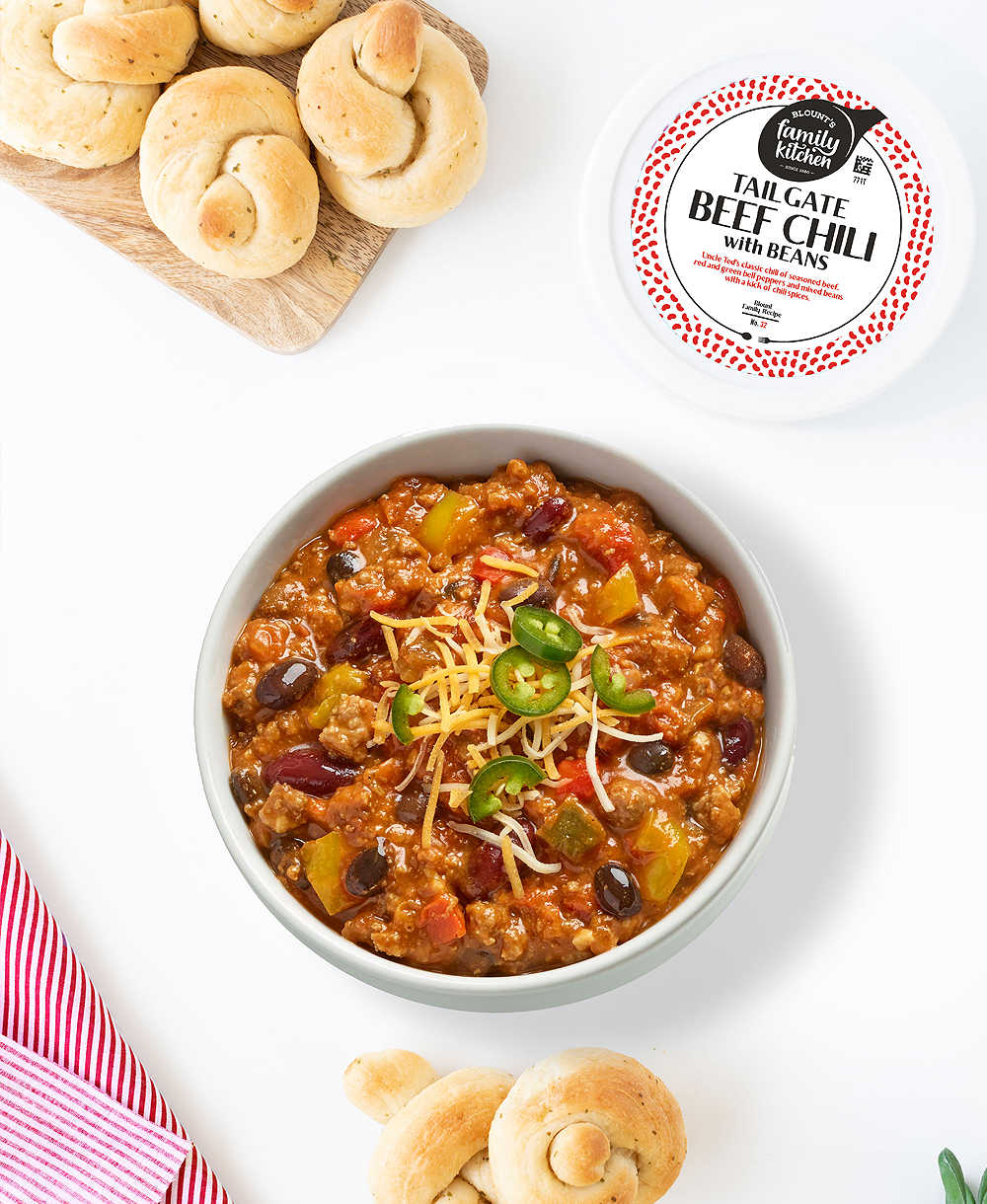 Uncle Ted’s classic chili of seasoned beef, red and green bell peppers and mixed beans with a kick of chili spices.